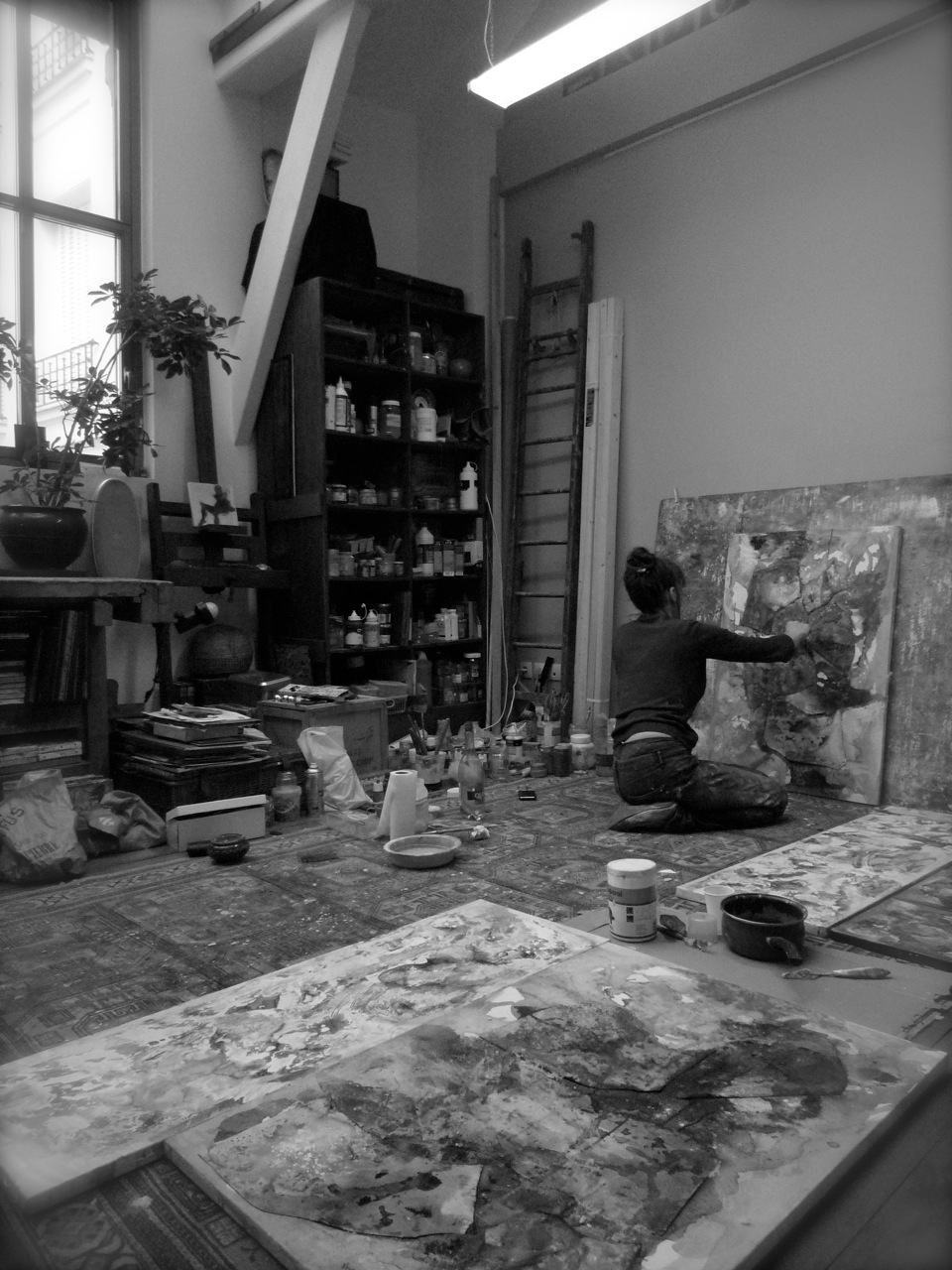 L’atelier de Sandre Wambeke se trouve à la Villa des Arts, lieu historique de la création artistique à Paris où se sont succédés Cézanne, Eugène Carrière et Louis Marcoussis.